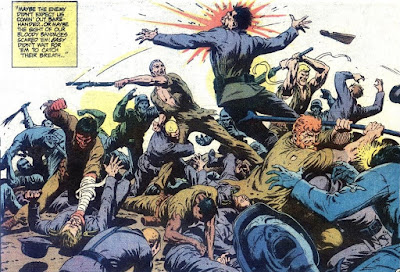 "Face the Devil!" is easily one of the spookiest and most mysterious Easy Co. stories we've ever read. Why did Conan the Barbarian suddenly show up at the village and how were the villagers able to subdue him so easily? Is Rock's battle with the skeleton in the iron mask a dream? Who knows? I don't really care, because it's cool as heck. My only complaint is that Kubert did not draw this story, because his cover is even better than Heath's interior art.